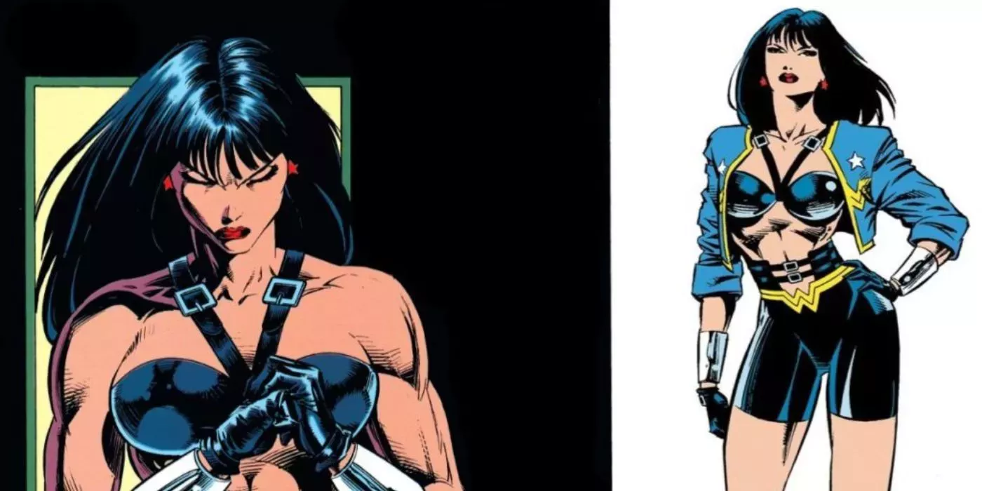 En la década de los 90, la Mujer Maravilla fue sustituida brevemente por una amazona más dura y atrevida, con un nuevo alias y un traje muy diferente. Este nuevo traje, que le daba la apariencia de una "motera" estereotipada, distaba mucho de la vestimenta clásica de Diana.