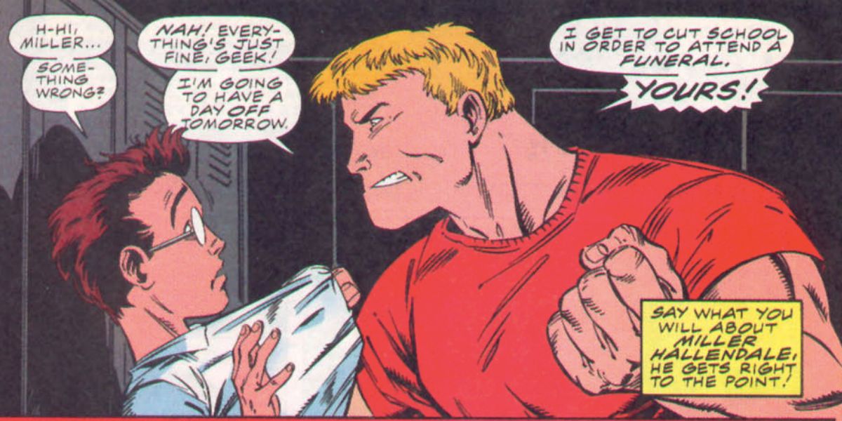El shock de lo que le pasó le hizo correr por la escuela sin ropa y le causó un daño considerable con su nueva fuerza. Por suerte, pudo usar sus nuevos poderes para vengarse de su matón destruyendo su motocicleta.