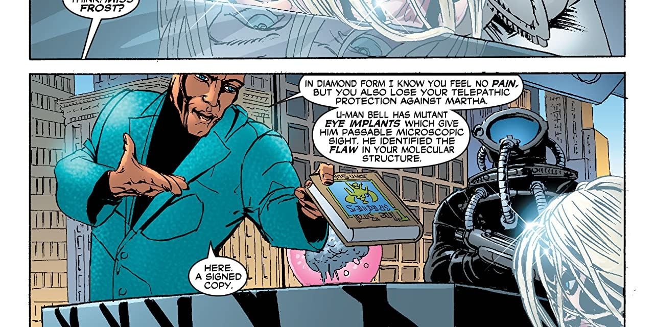 Originalmente, Morrison querÃa a Colossus en el equipo pero fue asesinado poco antes de que Morrison se hiciera cargo. Por lo tanto, se decidió por traer a Emma Frost y darle una mutación secundaria - la habilidad de transformar su piel en diamante y aumentar su fuerza a costa de su telepatÃa. Frost traerÃa una interesante dinámica al equipo, con su esnobismo y sexualidad manifiesta causando problemas, especialmente entre ella, Jean Grey, y el cÃclope.
