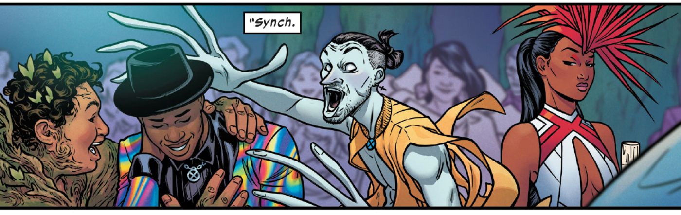 Independientemente de lo que piense M, Synch se ha ganado su lugar en los X-Men. Formó parte de un pequeño grupo que se infiltró en la base de los Niños de la Bóveda, donde se enteró de que sus poderes se habían amplificado tras su resurrección. En lugar de poder imitar únicamente los poderes de los mutantes, ahora podía copiar las habilidades de otros superhumanos como los Niños. Synch escapó de la bóveda antes de que los Niños lo mataran, lo que significa que es el único miembro del grupo que conserva sus recuerdos del siglo que pasaron allí. Eso le da décadas adicionales de experiencia y conocimiento de una de las mayores amenazas contra Krakoa.