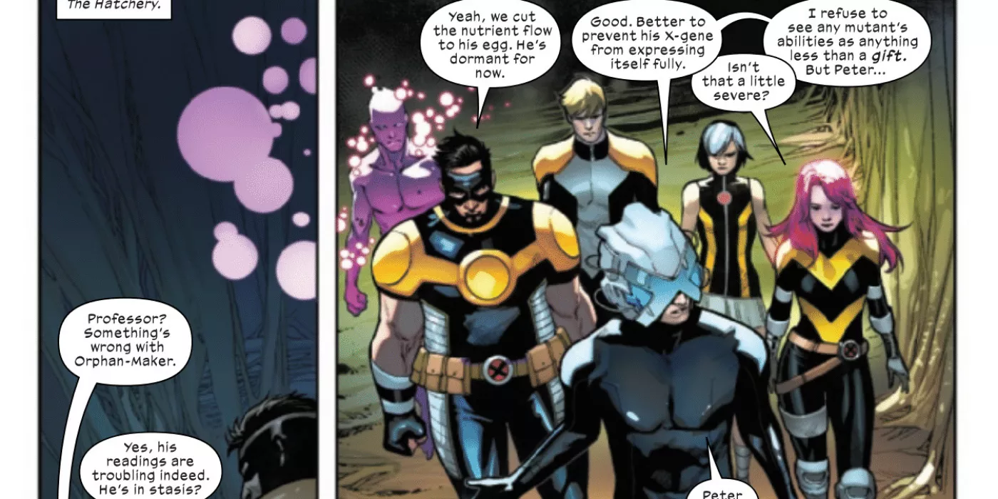 Empieza ahora.Cuando un ciudadano de Krakoa muere, normalmente resucita y sus recuerdos guardados se restauran... al menos cuando muere en nuestra dimensión. Para los difuntos entre los Hellions del Sr. Sinister, a quienes llevó a Arakko bajo falsas pretensiones, no han regresado como lo hicieron sus camaradas caÃdos antes que ellos. Nanny y Wild Child resucitaron con éxito, pero han regresado de forma diferente a como lo hicieron antes. Están más concentrados, son más intensos, y presumiblemente más peligrosos. Mientras camina por el criadero, Xavier es informado de que algo anda mal con el Huérfano, y se complace en escuchar que el joven mutante está inactivo por el momento. Como él dice, "Mejor prevenir que su gen X se exprese completamente... Peter tiene una maldición. Y no debe compartirla con el mundo".