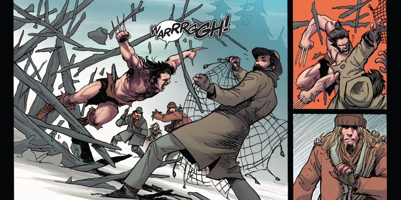 Así es como atrae la atención de Nathaniel Essex alias Sr. Sinister, y por extensión de Clara y Saul Creed que son los hermanos de Victor Creed alias Sabretooth. Essex quiere ver quién es este salvaje del bosque, así que suelta un gas para expulsarlo. En el momento en que Lobezno sale corriendo del bosque, con sus garras, atraviesa a varios de los hombres de Essex.