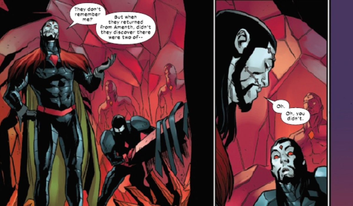 Cuando Sinister llevó a los Hellions a Amenth en una misión que creÃan que ayudarÃa a Krakoa a ganar el crossover X of Swords, todo resultó ser una treta para que Sinister pudiera acceder al ADN de los mutantes de Amenth. Por desgracia, su equipo de Hellions no sobrevivió al proceso. Mientras el Locus Vile de Amenth destrozaba a los Hellions en su territorio, Sinister mató al resto de su equipo para asegurarse de que sus secretos seguirÃan siendo sólo suyos. Sin embargo, parece que su gran complot se ha vuelto en su contra, ya que el clon de Sinister que empleó en su conspiración ha regresado para enfrentarse a su yo inferior.