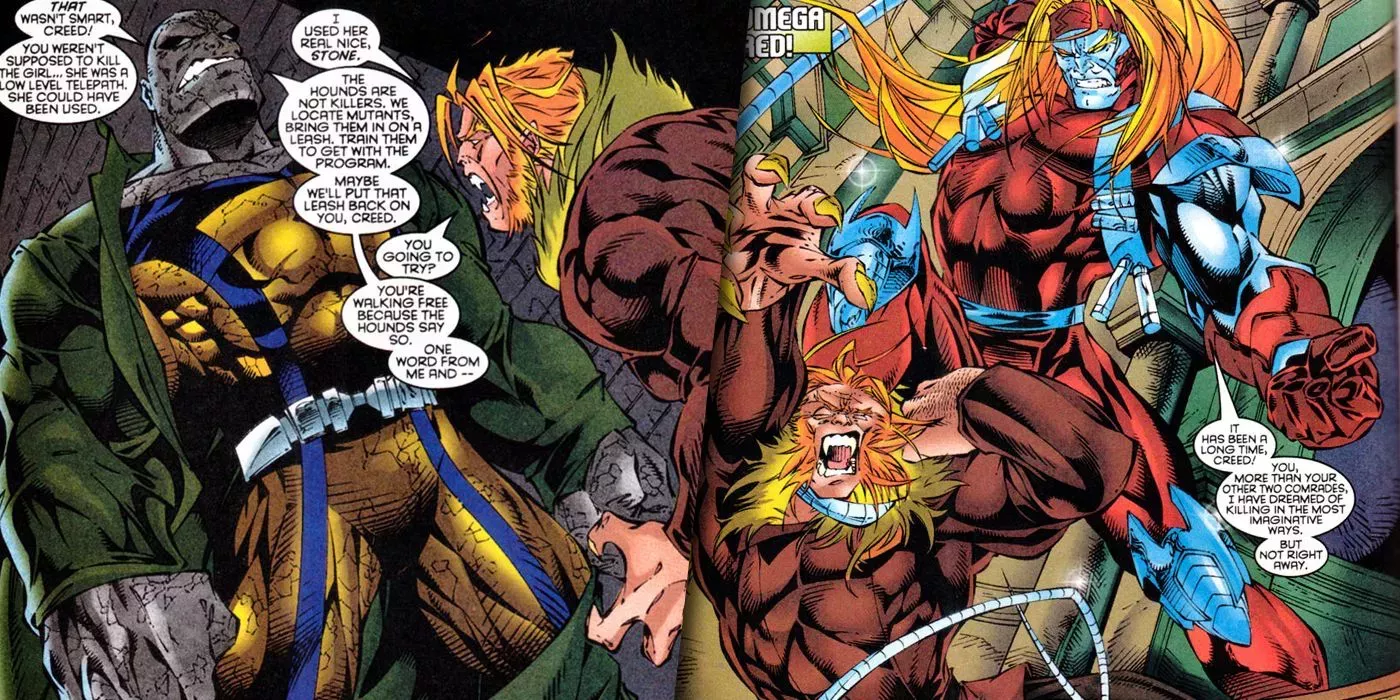 El controlador de Creed era otro mutante llamado Stone, aunque Dientes de Sable fue expulsado del programa después de que se negara a dejar de matar a sus objetivos. El programa del Sabueso acabaría transformando a los mutantes cautivos en rastreadores con el cerebro lavado en la trama de "Días del futuro pasado".