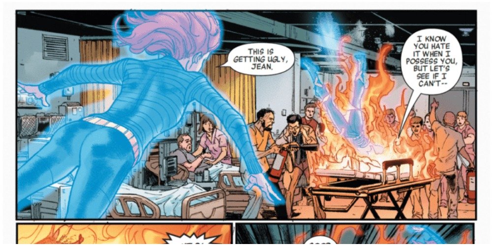También puede controlar el avión que la rodea y controlar el entorno. También es capaz de hablar con la gente a través de estos diferentes planos a su antojo. Esta es una habilidad muy poderosa que hace de Jean uno de los mutantes más fuertes en este momento.