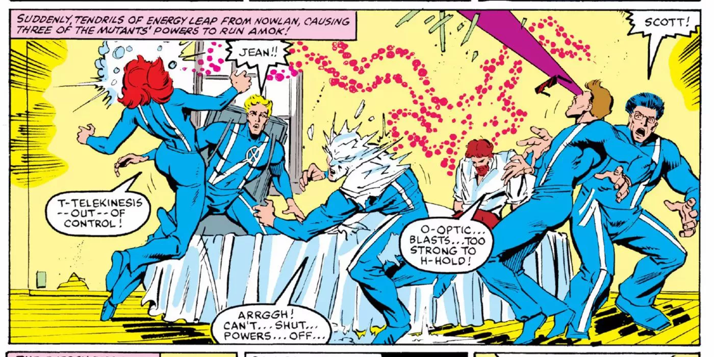 Aunque el nombre puede no ser familiar para los fans de los cómics, Nowan fue, en un momento dado, una de las armas mutantes más poderosas que existieron. Sin embargo, Nowlan solo apareció en dos cómics antes de que Brand lo mencionara en su informe. Sin embargo, esos dos números fueron dos de los más importantes en la historia de los X-Men. Apareció por primera vez en 1986 en X-Factor #5 de Bob Layton, Jackson Guice, Josef Rubinstein, Petra Scotese y Joe Rosen. Fue un arma que ayudó a aumentar los poderes de la Alianza del Mal, un grupo que consistÃa en Frenzy, Tower, Stinger y Tomeshadow.