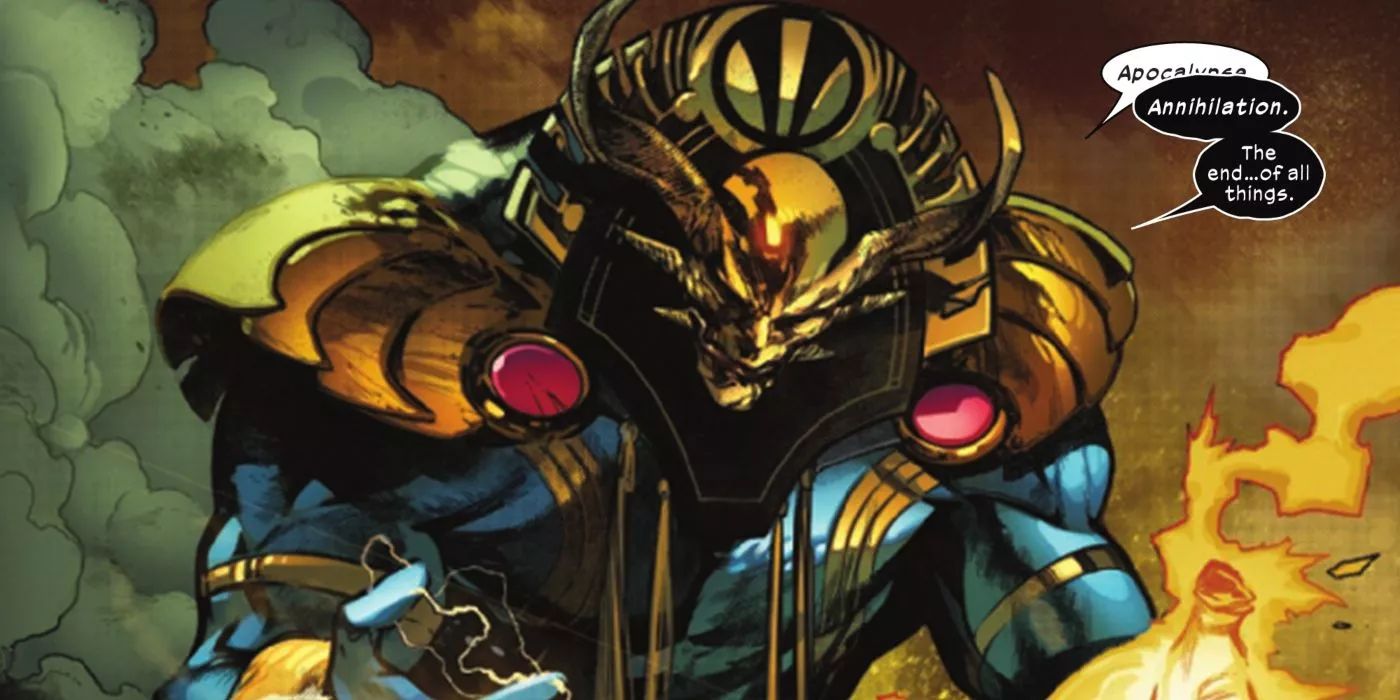 En la batalla final para decidir la contienda, Apocalypse se vio obligado a luchar contra su esposa Genesis, que se había convertido en la nueva portadora de Aniquilación. Sin embargo, a pesar de los ejércitos a su mando y la Espada del Crepúsculo en sus manos, Apocalypse fue capaz de derrotarla en la batalla. Cuando se desató el infierno y Aniquilación obligó a su debilitada forma a intentar arrasar con el Otro Mundo, Apocalypse pudo arriesgar el yelmo de su cabeza y en su lugar colocarlo sobre la de él... engulléndolo en el poder. Junto con el poder y los ejércitos de Aniquilación, Apocalypse se vuelve brevemente más poderoso de lo que nunca antes había sido, lo suficientemente fuerte como para arrasar mundos enteros con poco esfuerzo. Si quisiera, un ejército entero de mutantes demoníacos le serviría. Incluso podría levantar la Espada del Crepúsculo, lo suficientemente fuerte como para separar continentes, y acabar con toda la vida.