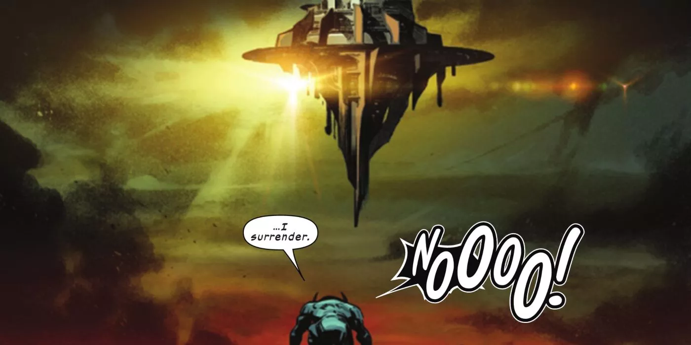 Pero con su familia finalmente casi liberada, Apocalipsis hizo lo imposible y resistió la tentación de la Aniquilación. Se negó a ceder a los oscuros impulsos de ese poder y en su lugar hizo lo que Apocalipsis, ni Aniquilación, se esperaba que hiciera: rendirse. Apocalypse se rindió al juicio de Saturnino, permitiendo que la Omniversal Majestrix finalmente interviniera y terminara la batalla de una vez por todas. Incluso perdonó a Apocalypse, en lugar de separar la fuerza de aniquilación de él y darle una forma más débil (pero aún así mortal y corruptora) como una lanza.