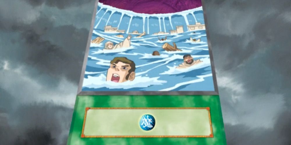 Una de las tarjetas de anime más conocidas en cuanto a lo ridÃculo que es El Sello de Oricalcos del arco de relleno de Despertando a los Dragones. Un hechizo de campo que convierte cualquier simple duelo en una lucha por tu propia alma, además de tener una lista de efectos casi tan larga como El Dragón Alado de Ra. Cuando está en el campo de juego, no puede ser atacado o destruido, permite al jugador invocar a los monstruos a sus zonas de hechizo y trampa, da a cada monstruo de su lado del campo de juego un extra de 500 ATK, y para colmo de males, puede ser descartado de la mano para negar el efecto de cualquier carta. Probablemente hay una buena razón por la que esta carta tuvo que ser fuertemente alterada antes de ser liberada en el TCG.