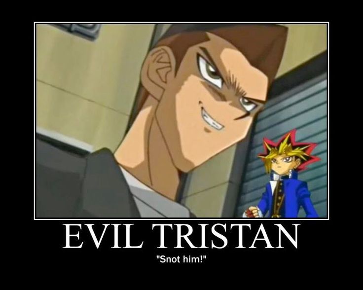 En otro meme que hace referencia tanto a la serie original como a Yu-Gi-Oh! The Abridged Series , Tristán se presenta como "Tristán Malvado" aquÃ, algo que no sucede en la serie original pero sà en Abridged .