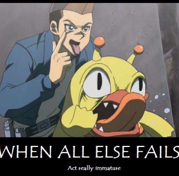 Aún asÃ, trata de ser solidario y de ayudar en lo que puede, aunque sólo sea proporcionando un poco de alivio cómico. Los fans definitivamente pueden imaginarlo saltando para ser molesto e inmaduro porque piensa que asà es como puede ayudar en cualquier situación.