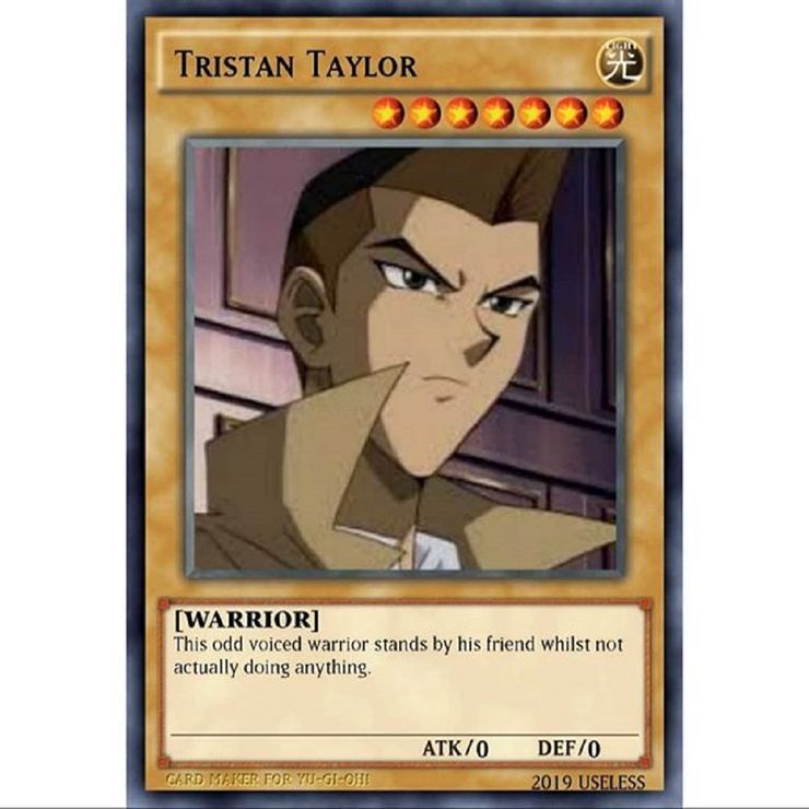 Las cartas de broma con algunos de los rasgos de los personajes principales, divertidos o extraños, son bastante comunes en Yu-Gi-Oh! y Tristán definitivamente no es una excepción a esta regla.