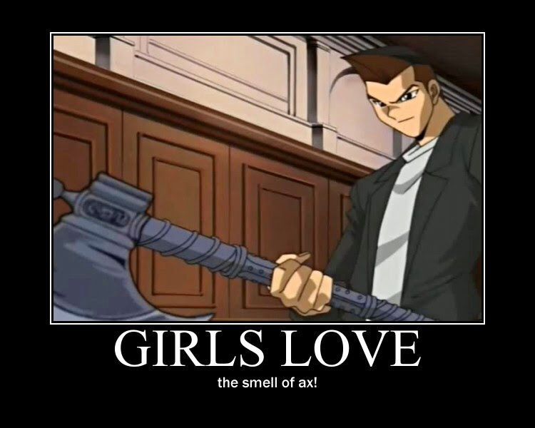 El spray corporal, por supuesto, afirma que si un hombre lo usa, las mujeres caerán sobre él. Es gracioso pensar en aplicar esa idea a un hacha real.